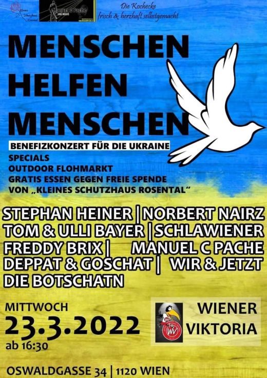 eute den 23.3 2022 lud der Wiener Fußballclub Victoria zum Benefizkonzert, Menschen helfen Menschen für die Ukraine.