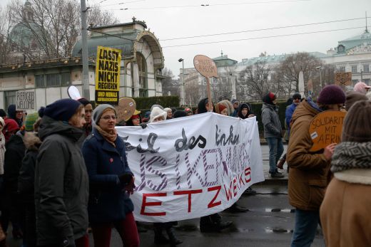 Der immer stärker werdende Rechtsruck Europas, ist ebenfalls Thema auf der Demo. Zahlreiche originelle transparente, wie etwa Nein zu "Schwarz-Blau„ wurden auf der Demo gesichtet. Ebenfalls auf der Kundgebung, die Omas gegen Rechts um Gründerin Monika Salzer die ein Ständchen für die Demonstranten sangen.Trotz Regen und Kälte zogen die Demonstranten, vom Wiener Karlsplatz zum Heldenplatz und wieder Retour, wo gegen Ende noch Austro Rapperin Yasmo ein paar Songs zum Besten gab. Besondere Vorfälle gab es auf der Demo, laut Polizei keine.