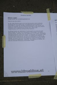Diverse interessante Reden waren zu hören, wie etwa von Alois Reisenbichler zum Thema Atomstrom, (der seit Jahren aktiv im Wiener Friedensbüro mitarbeitet, und diesen Event mitgestaltet).