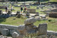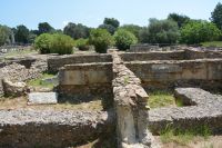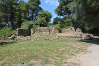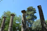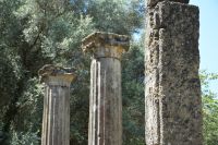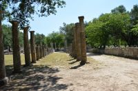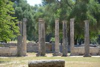 die ab dem 8. Jahrhundert v. Chr. Austragungsort der ursprünglichen Olympischen Spiele war. Unter den zahlreichen Ruinen befinden sich Trainingsbereiche der Athleten, ein Stadion sowie Tempel, die den Gottheiten Hera und Zeus gewidmet sind. Im archäologischen Museum sind Fundstücke ausgestellt, darunter eine Statue von Hermes, die dem Bildhauer Praxiteles zugeschrieben wird.