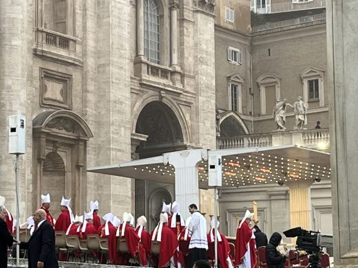 Trauermesse für den emeritierten Papst Benedikt XVI. Die Messe wurde von Papst Franziskus geleitet und mit dem Eingangsantiphon „Requiem aeternam“ eröffnet. Etwa einhundertdreißig Kardinäle anwesend. Von den offiziell in Rom anwesenden ausländischen Delegationen waren nur die Delegationen Deutschlands und Italiens eingeladen.